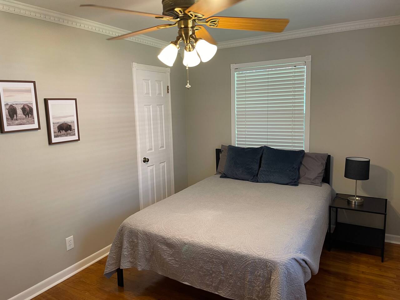 This space is great for those looking for a comfortable, affordable option in a desired location. Guests have full access to the private bedroom; shared areas are listed above and below. In the kitchen there is a stove, an oven, cookware, utensils, a single-cup Keurig coffee maker, toaster, microwave, full size refrigerator, and some extras. Linens and towels are provided. Wi-Fi is included. Street and driveway parking is available. If you are new to Airbnb, in order to accept your reservation, we ask that your profile be fully verified. When requesting, please tell us a little about yourself and your guest, as well as the purpose of your visit.