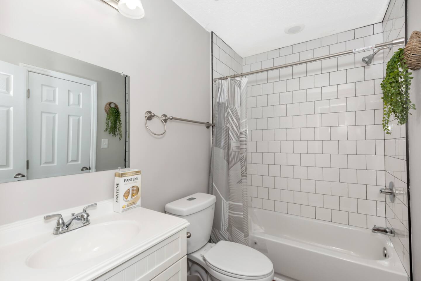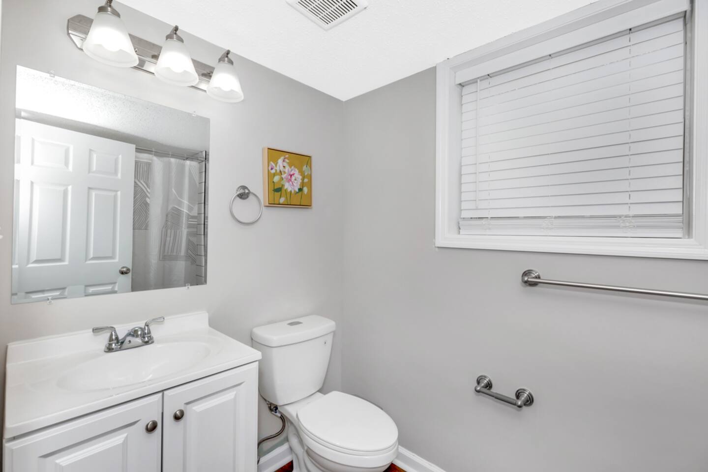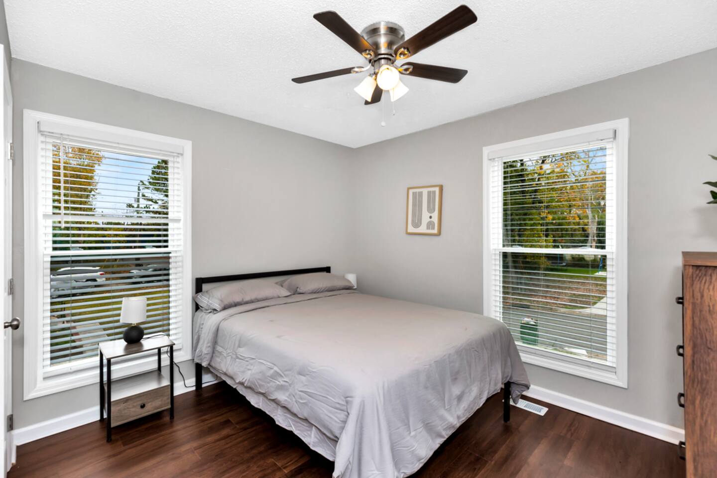In this three bedroom, two bathroom home, all bedrooms have queen mattresses, as well as closets and dressers (so great storage for both short and long term guests). There is a separate room with a desk, chair and door that can be used an office. The kitchen has a Keurig coffee maker, toaster, microwave, electric stove and oven, as well as a full size refrigerator and freezer.