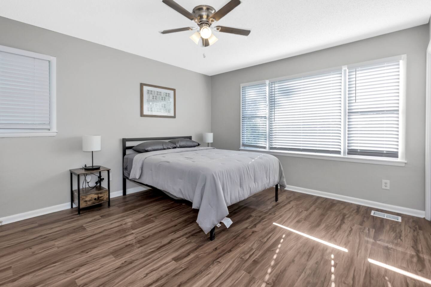 The whole group will enjoy easy access to everything from this centrally located place. This home is perfect for business travelers, student interns and those on a budget in search of modest, simple and clean accommodations. Centrally located in the Rocket City with easy access to Gate 9 of Redstone Arsenal, Cummings Research Park, I-565 and Bridge Street Town Center, the space comes with four bedrooms, three bathrooms, two living spaces, dining area, full kitchen, and a separate work area.