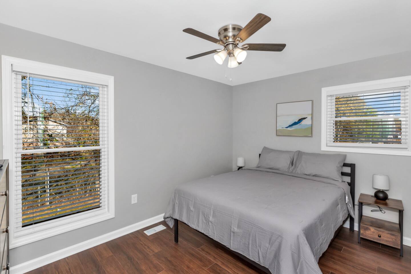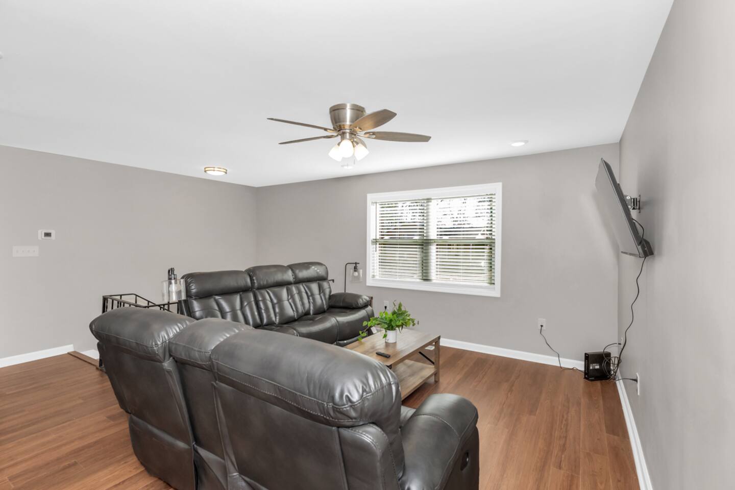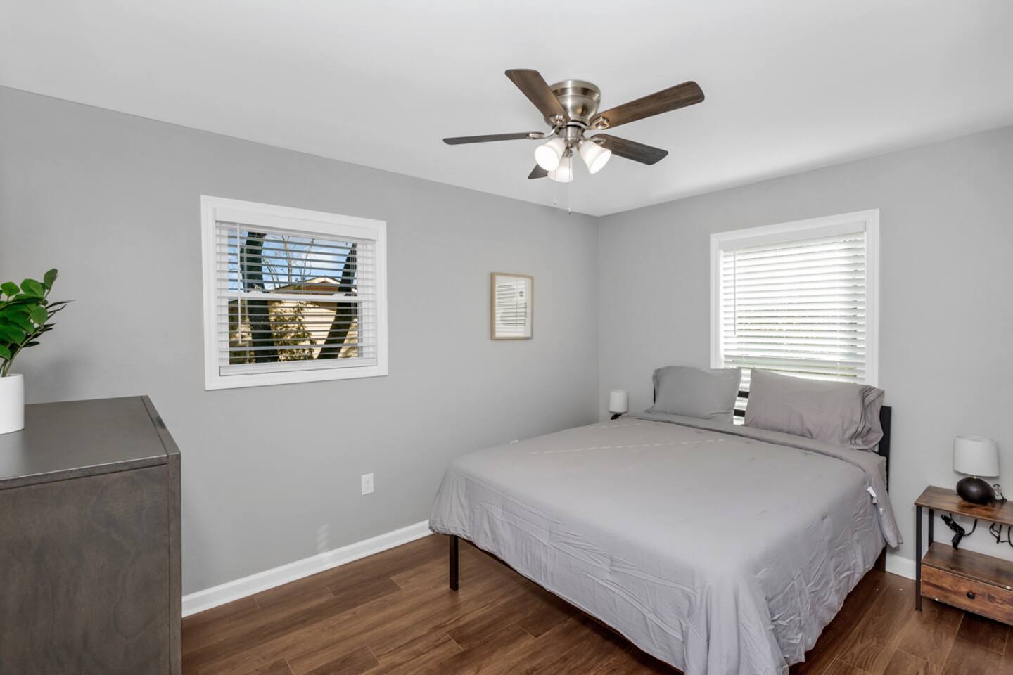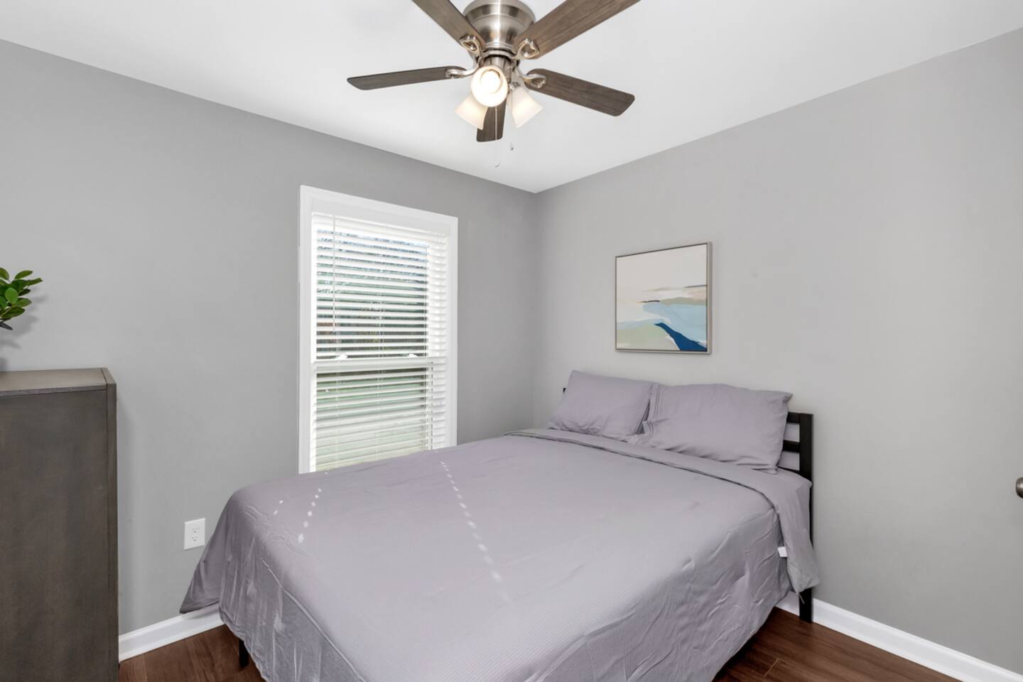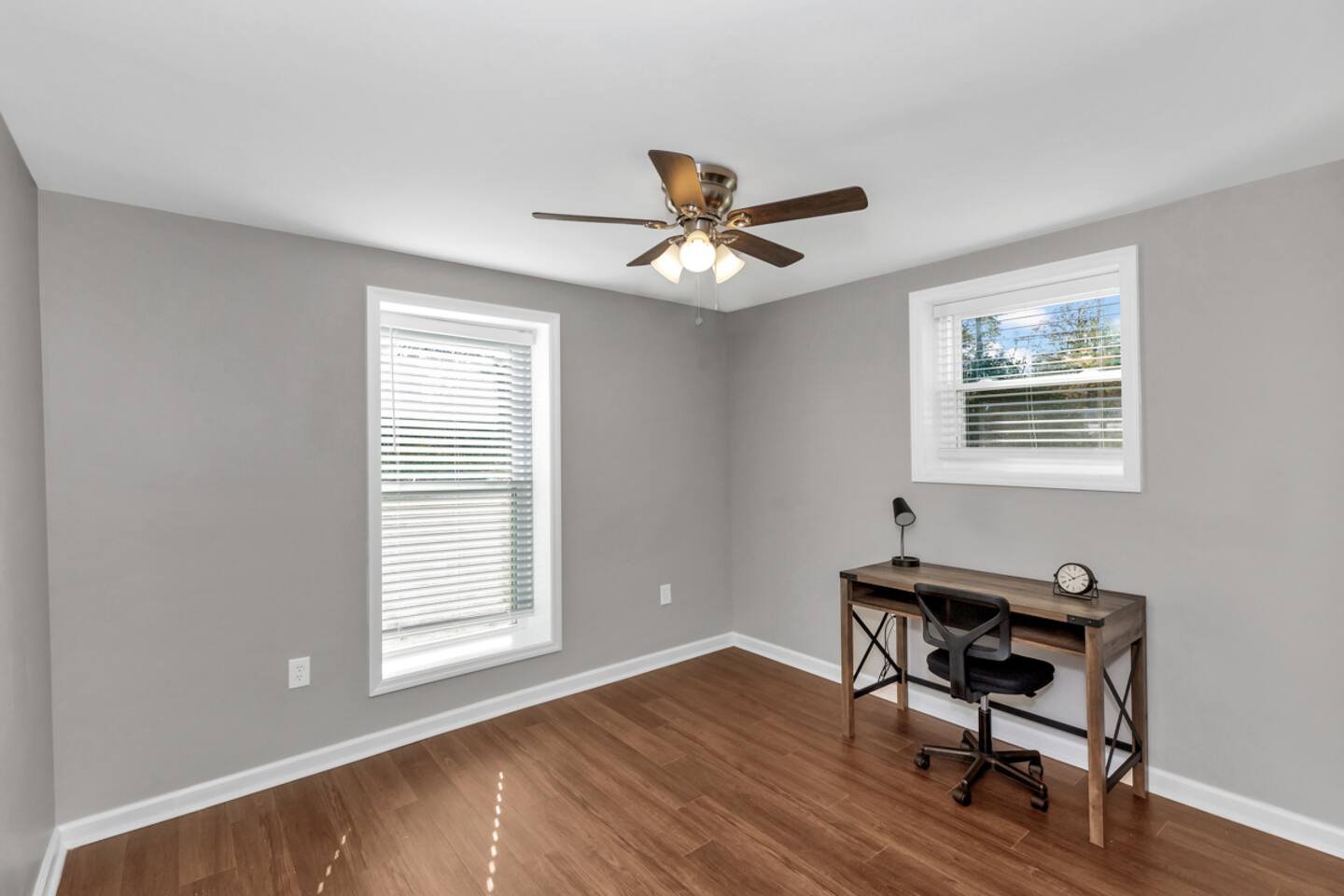 In this three bedroom, two bathroom home, all bedrooms have queen mattresses, as well as closets and dressers (so great storage for both short and long term guests). There is a room with a desk, chair and door that can be used an office. There is also an empty room that can be used as a makeshift play room or storage space for guests with a few extra items. The kitchen has a Keurig coffee maker, toaster, microwave, electric stove and oven, as well as a full size refrigerator and freezer. The living room is cozy and comfortable with new reclining couches.