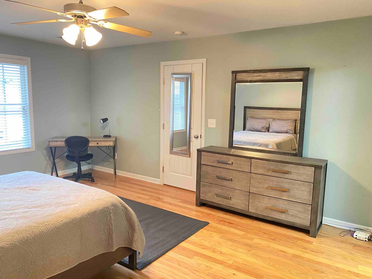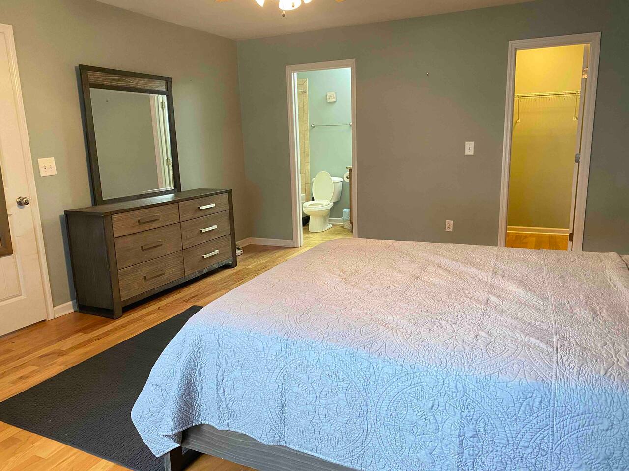 A country cottage with urban charm, this cottage is gem to behold. Nestled on a corner within walking distance to Historic Madison Station, guests can opt to walk to restaurants, shops and a fitness center for classes. Historic Madison Station also boasts a train – this is a perfect stay for those who don't mind the sound of trains passing through the night (and their whistles alerting you of their arrival). Guests will enjoy the entire three bedroom, 2.5 bathroom home. Guests are also encouraged to use the in-house laundry room, living room, kitchen, dining room, and downstairs powder room. There is also a paved patio out back that is also available for guests to enjoy.